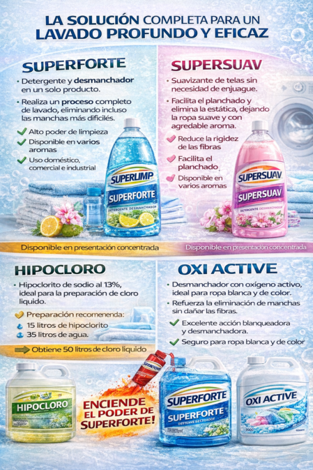 Al agregarse a SUPERFORTE, incrementa significativamente su capacidad para eliminar manchas extremas y grasa pesada.